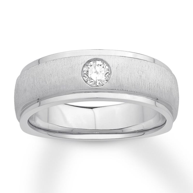 This dashing men's solitaire sparkles with a 1/4-carat round diamond. Brushed and polished finishes enhance the 10K white gold band to complete the look. From the Now & Forever® Collection.